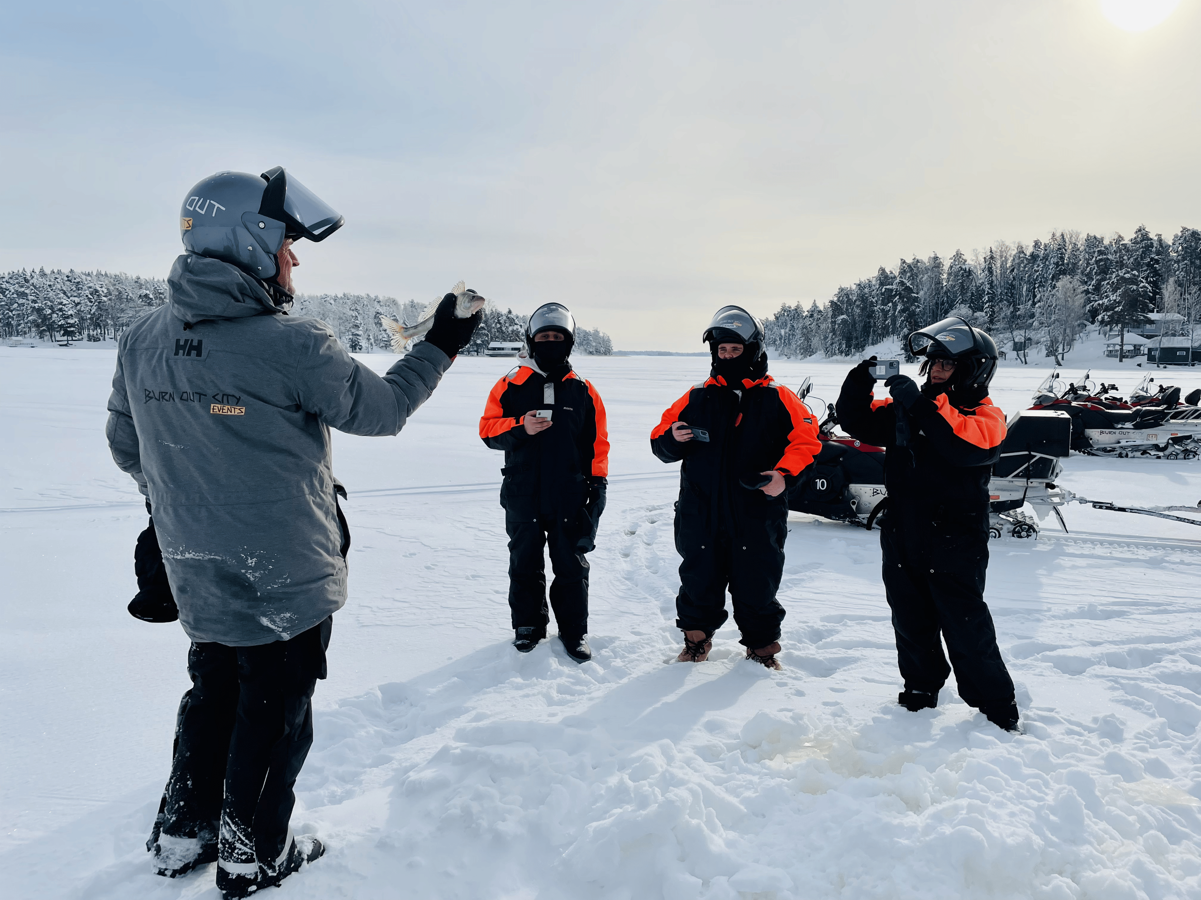 Please note: If the sea ice is not sufficiently strong, the snowmobile tour will be rerouted to forest and field trails located just 15 minutes from our snowmobile base.
