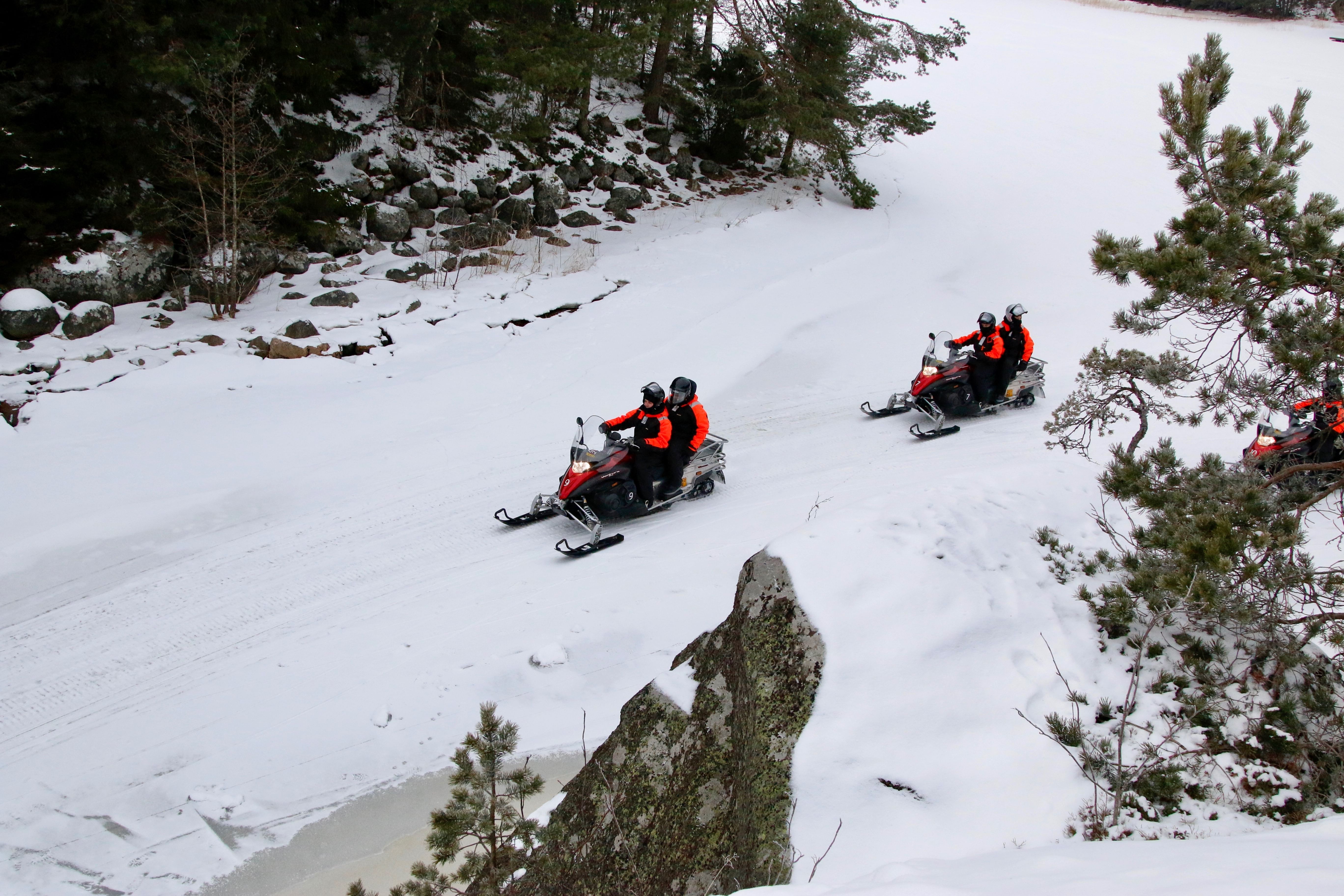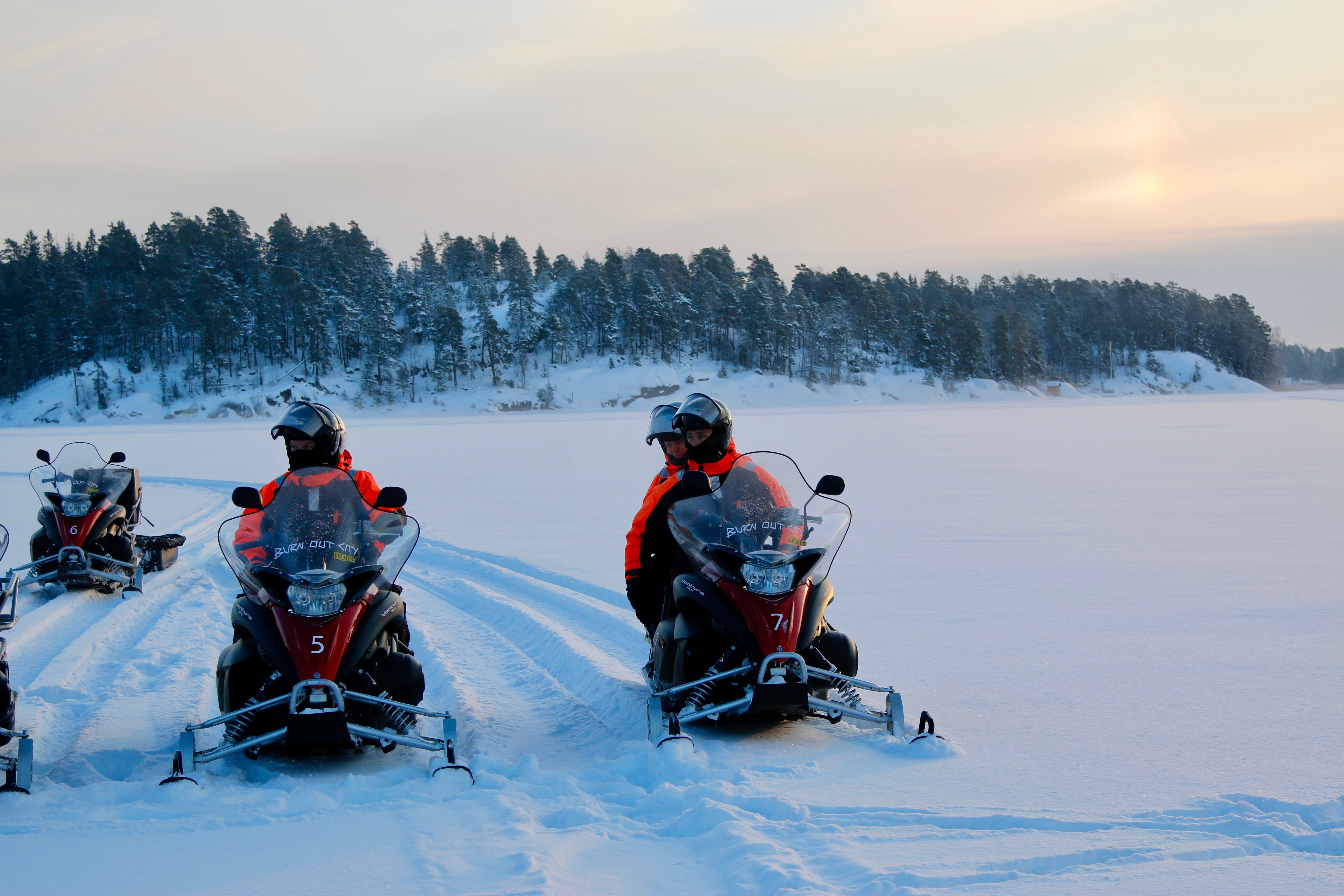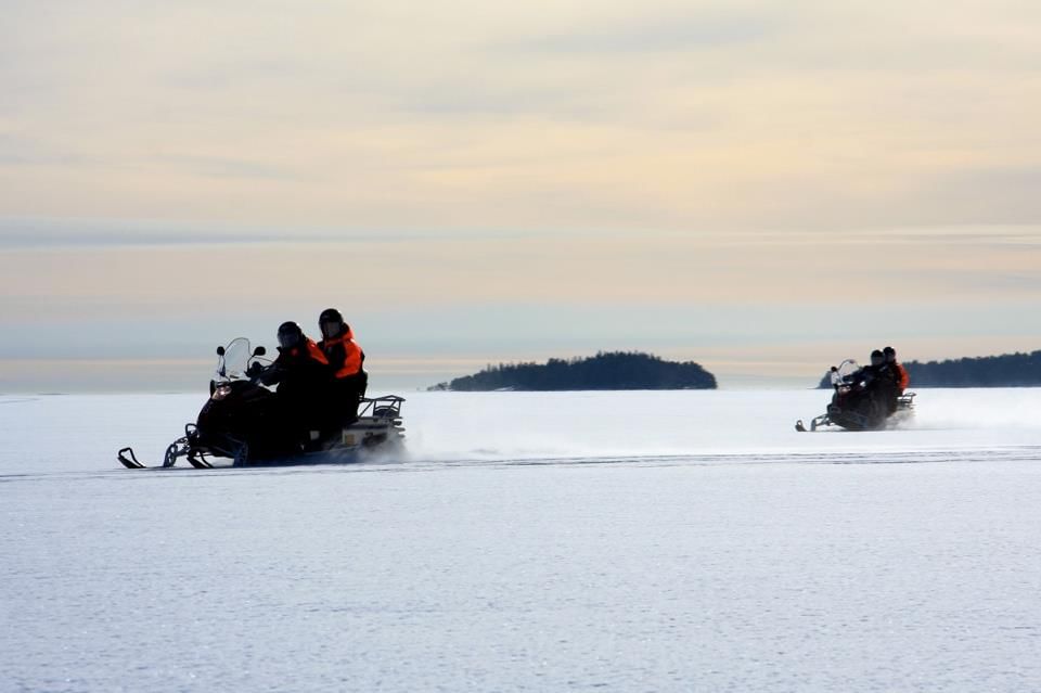 On the snowmobile adventure you will experience the beautiful frozen archipelago with your attentive local guides. You will make several stops during the tour and the guide will explain to you about living in the archipelago. At an island you will make a longer break and enjoy lunch cooked over open fire and warm drinks. During the lunch break you have a chance to try snowshoe walking or ice fishing. After the break you will continue your adventure back to the snowmobile centre.