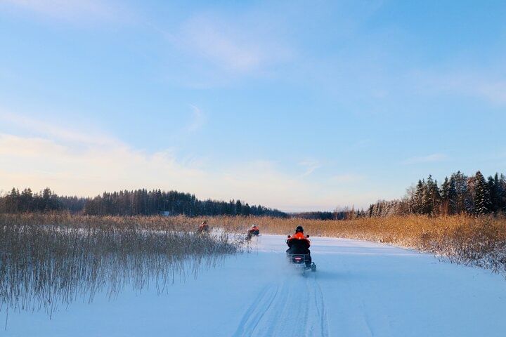 During the lunch break you have a chance to try snowshoe walking, kick sleds or ice fishing. After the break you will continue your adventure back to the snowmobile base. Time spent out on the snowmobile tour approximately 2,5 hours.
