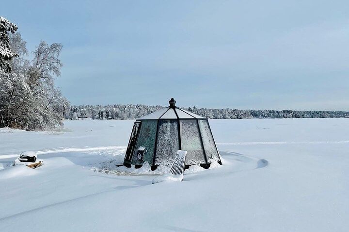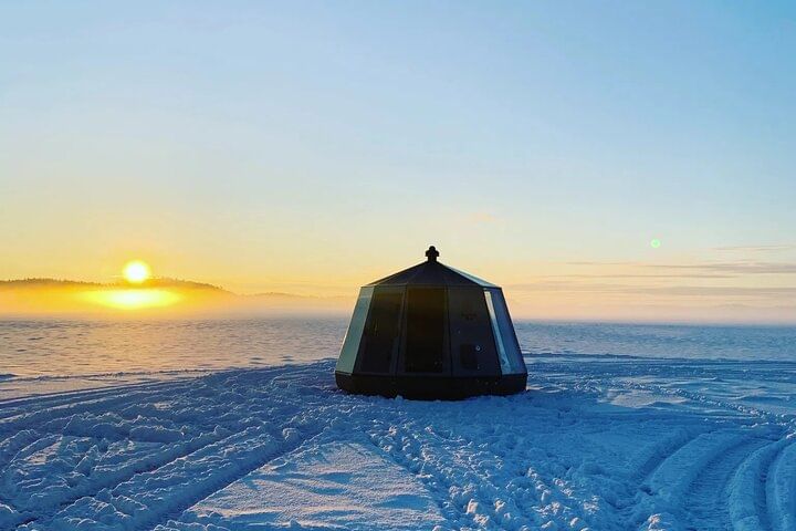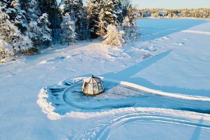 At the snowmobile base you will check in to the glass igloo. You can explore the archipelago on your own, experience more winter activities and go to the sauna. During the sauna you can also take a dip in the cold sea. Sauna time according to your preference.