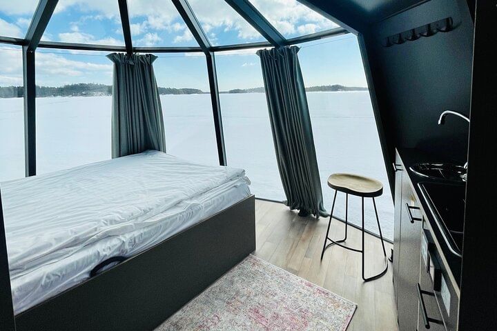 Experience the archipelago in winter. Includes a snowmobile tour, lunch, sauna, ice swimming and overnight experience in glass igloo.